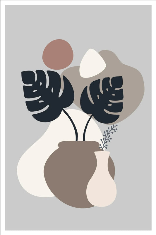 Serene Aesthetics: Minimalist Monstera & Vase Artwork for Home Decor