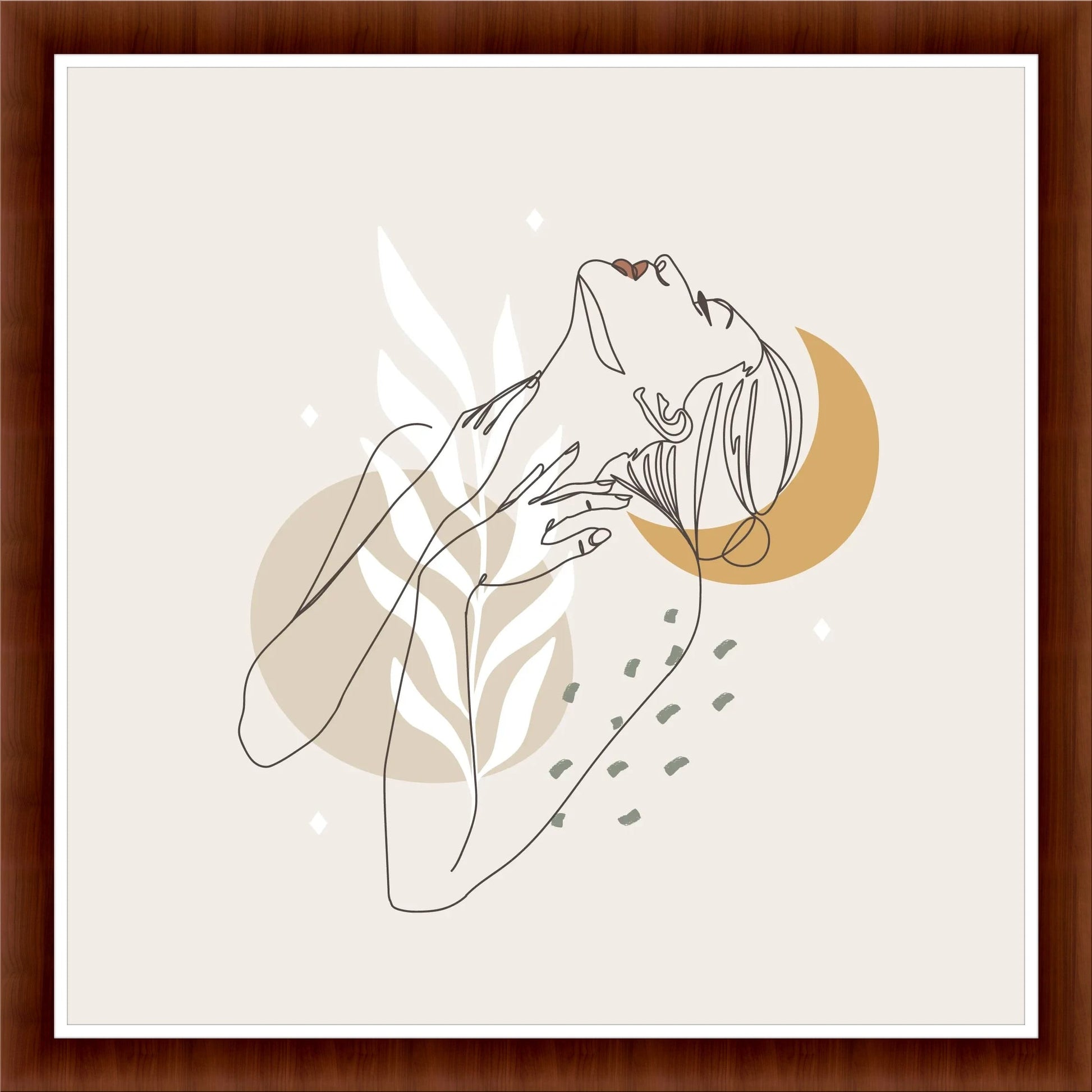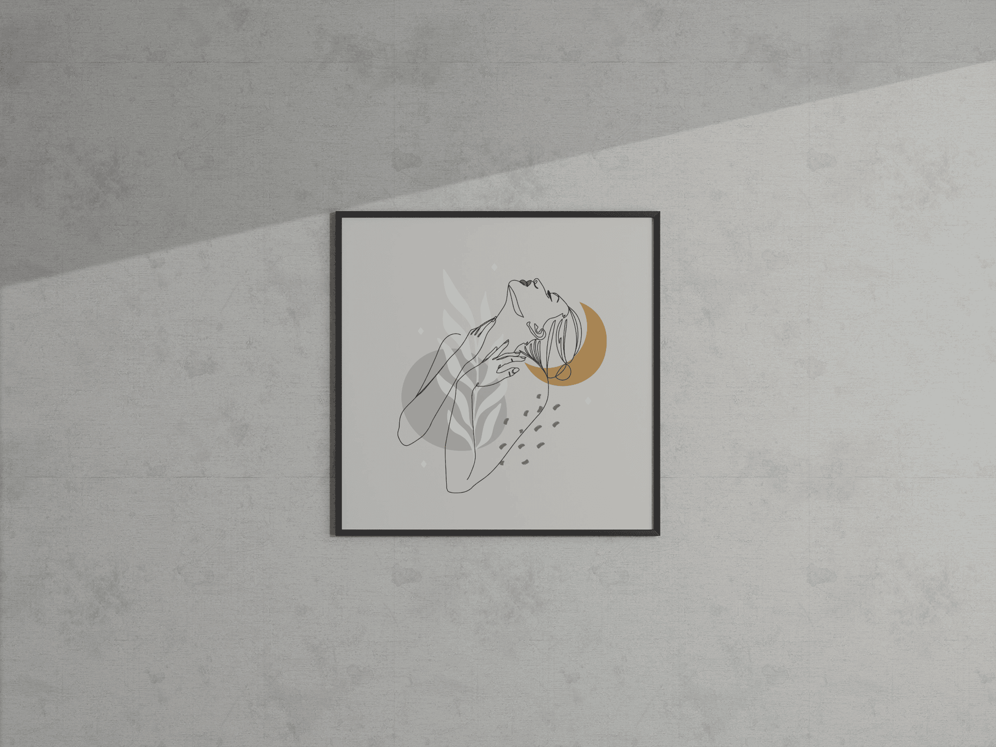 Experience the delicate beauty of modern minimalism with this exquisite feminine line art print , featuring a graceful silhouette adorned with flowing hair and a floral crown. The artwork's clean lines and soft color palette create a serene and sophisticated ambiance, making it an ideal choice for bedroom décor or as a calming focal point in your living room . Its timeless design ensures it will complement any style, adding a touch of elegance to your home.